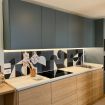 La cucina a vista, curata nei dettagli ed equipaggiata con tutto il necessario, lavastoviglie inclusa, è pensata per garantire comfort anche durante soggiorni più lunghi.
