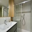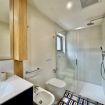 Un secondo bagno, adiacente alle due camere, dispone di lavabo, sanitari completi e un ampio box doccia.