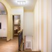Il secondo bagno, situato nel corridoio adiacente alle camere, è dotato di doppio lavabo, box doccia e sanitari completi.