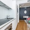La cucina open space è moderna e funzionale, completamente attrezzata per soggiorni prolungati. Tra gli elettrodomestici di ultima generazione troviamo un forno tradizionale e un forno a microonde.