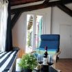 Un’ampia finestra regala una splendida vista sul mare e sul verde, mentre una seduta in muratura sotto la finestra offre uno spazio tranquillo dove rilassarsi o leggere in pace.