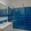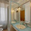Qui di fronte si trova il primo bagno, costituito da un ampio box doccia e sanitari completi.